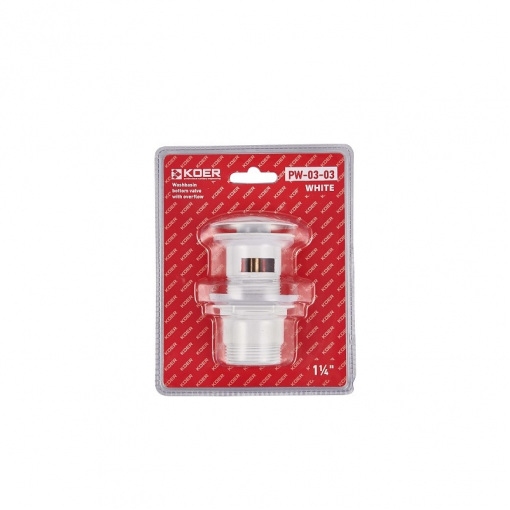 Донный клапан для умывальника с переливом Koer PW-03-03 1 1/4'' (кнопка) (Белый) (KR3395)