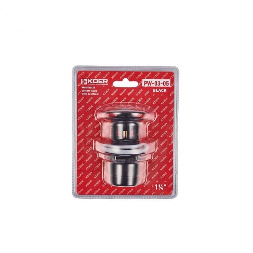 Донный клапан для умывальника с переливом Koer PW-03-05 1 1/4'' (кнопка) (Черный) (KR3396)