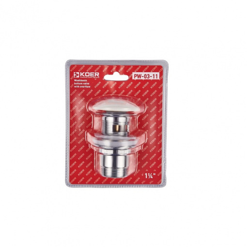 Донный клапан для умывальника с переливом Koer PW-03-11 1 1/4'' (кнопка) (KR3397)