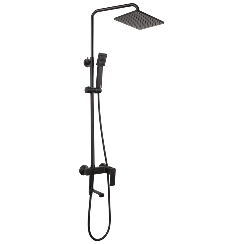 Душевая колонна HAIBA KUBUS 003-J Черная (HB3941) имеет заменяемый запорный элемент - керамический картридж. Устанавливается на трубы холодной и горячей воды, вмонтированные в стену. Комплектация включает ручную лейку, шланг в оплетке из нержавеющей стали, и крепежный элемент.