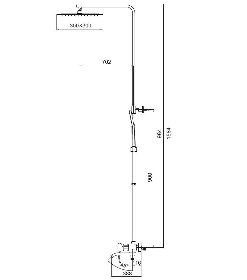 Форма воронки верхнего душа квадратно