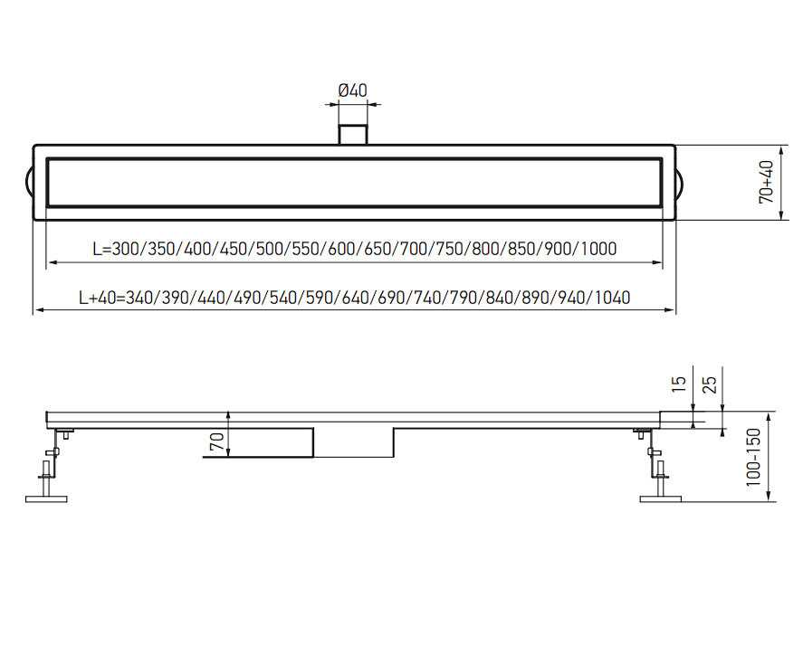 Подробные характеристики Душевой трап из нержавеющей стали SUS304 KOER FD35-70x600 Black (KR3272).