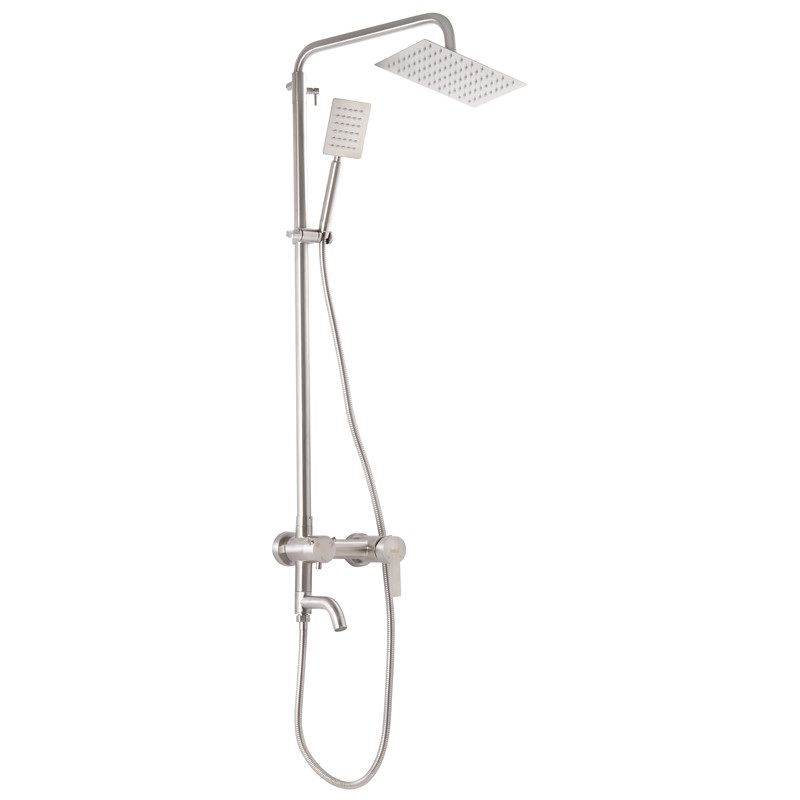 Душевая колонна со смесителем Haiba NOX-009-J (HB0777) имеет заменяемый запорный элемент - керамический картридж диаметром 40 мм. Устанавливается на трубы холодной и горячей воды, вмонтированные в стену. Комплектация включает ручную лейку на 5 режимов, шланг в оплетке из нержавеющей стали, и крепежныей элемент.