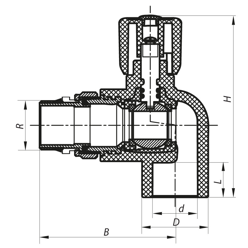 Кран радиаторный 20x1/2 угловой с прокладкой "антипротечка" PPR KOER K0161.PRO (KP0207)