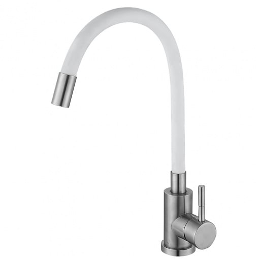 Кухонный смеситель с белым силиконовым изливом Zerix LUX-011 Refl.White (нерж. сталь) (ZX4877)