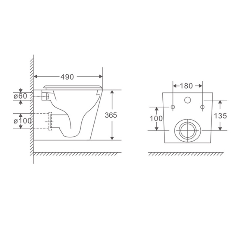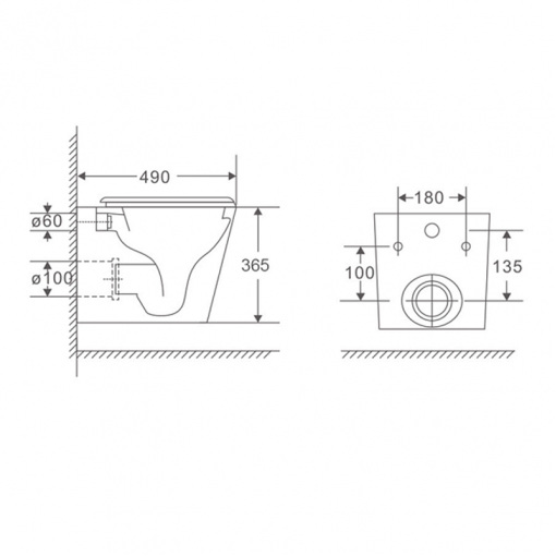 Подвесной унитаз Mixxus Premium Quadro-0301-T3 490x340x360mm, система смыва TORNADO 3.0 (MP6453)