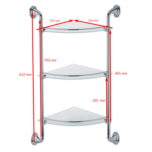 Полка стеклянная угловая 3-ярусная ZERIX LR1507-3 (LL1409)