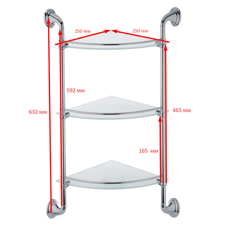 Подробные характеристики Полка стеклянная угловая 3-ярусная ZERIX LR1507-3 (LL1409).