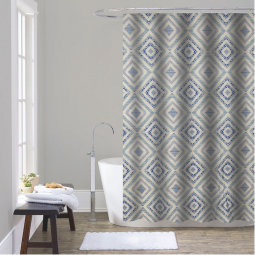Штора для ванной из полиэстера Zerix SCT-011-180x180 (Узор "Синий ромб на сером") (ZX4982)