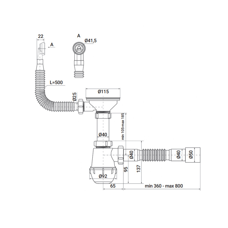 Сифон для кухни ZERIX SK-02-C 3 1/2"x40 с резьбовым выпуском и круглым переливом (ZX4954)
