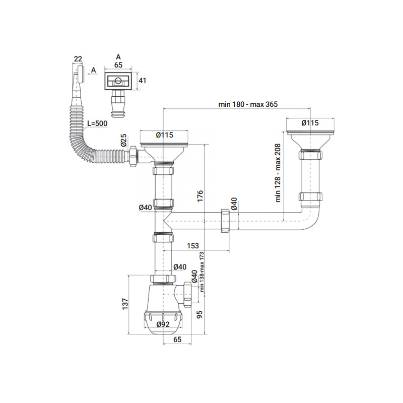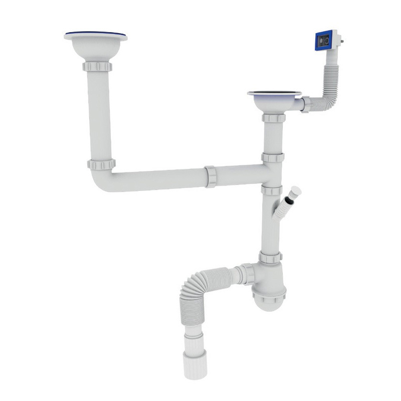 Сифон для кухни ZERIX SK-03-A 3 1/2"x40 с двумя выпусками и отводом для стиральной машины (ZX4955)