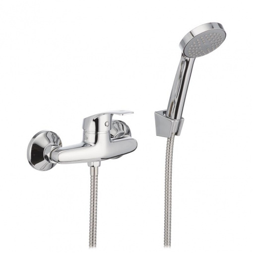 Смеситель однорычажный для душа Cron Fabio 003 (HB0903) имеет заменяемый запорный элемент - картридж с керамическими пластинами диаметром 40 мм. Устанавливается на трубы холодной и горячей воды, вмонтированные в стену. Закрепляется с помощью эксцентриков, которые идут в комплекте вместе с резиновыми прокладками, декоративными чашками, шлангом, лейкой и кронштейном.