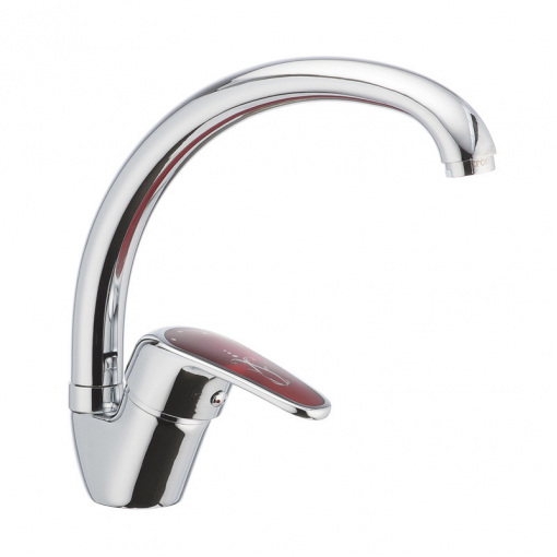 Одноручковый смеситель для кухни CRON MAGIC 777 (красная ручка) (CR0117) монтируется под одно отверстие (мойка, столешница, подоконник) на гайку. Материал корпуса - стойкий к коррозии силумин (сплав алюминия с кремнием). Покрытие - зеркальный хром.