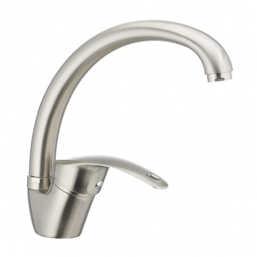 Одноручковый смеситель для кухни CRON MARS 777 (CR0783) монтируется под одно отверстие (мойка, столешница, подоконник) на гайку. Материал корпуса - стойкий к коррозии силумин (сплав алюминия с кремнием). Цвет покрытия - нержавеющая сталь.