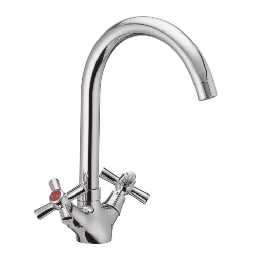 Двуручковый смеситель для кухни CRON POLO 275 (CR0213) монтируется под одно отверстие (мойка, столешница, подоконник) на гайку. Материал корпуса - стойкий к коррозии силумин (сплав алюминия с кремнием). Покрытие - зеркальный хром.