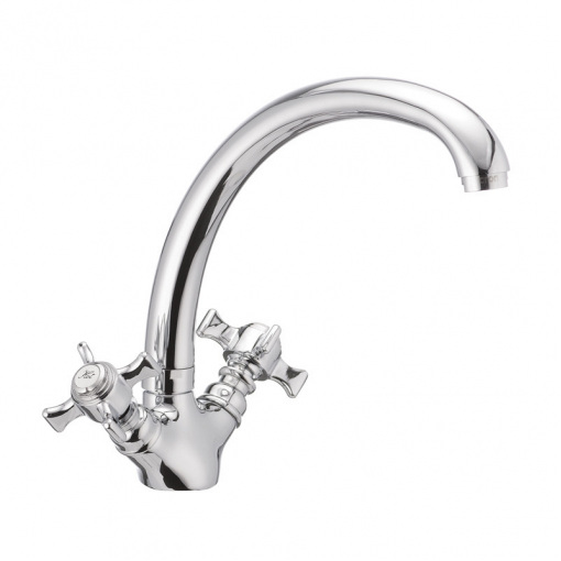 Двуручковый смеситель для кухни CRON ZEUS 273 (CR0083) монтируется под одно отверстие (мойка, столешница, подоконник) на гайку. Материал корпуса - стойкий к коррозии силумин (сплав алюминия с кремнием). Покрытие - зеркальный хром.