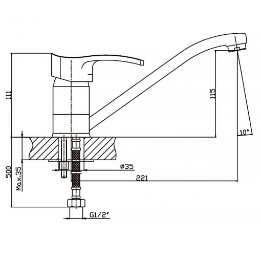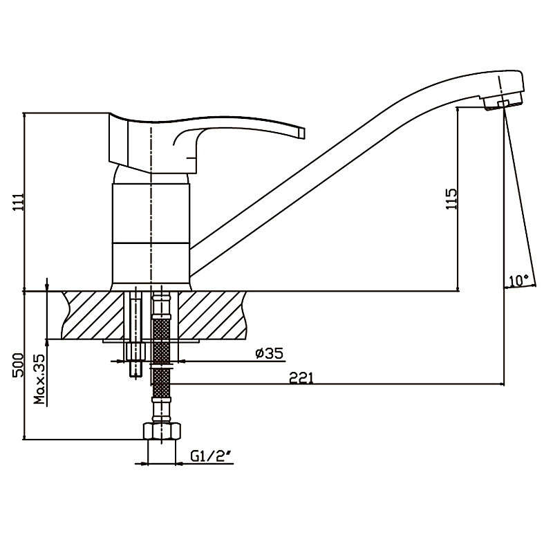 Излив поворотный длинной 221 мм. Запорный элемент - керамический картридж 40 мм, производства компании Sedal, который в случае чего можно заменить. Подключается к трубопроводу двумя гибкими подводками, которые идут в комплекте вместе с крепежным элементом, аэратором и резиновыми прокладками. Поставляется в фирменной коробке Haiba.