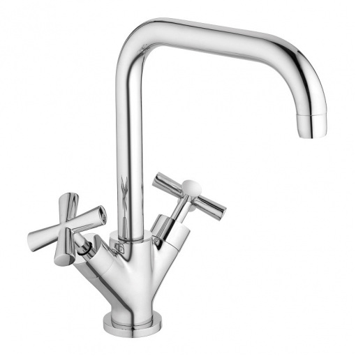 Двуручковый смеситель для кухни Haiba SENTOSA 011 (HB0363) монтируется под одно отверстие (мойка, столешница, подоконник) на шпильку. Изготовлен из латуни (сплава цинка, меди и др. металлов) обладающей высокой прочностью, износостойкостью и являющейся одним из лучших материалов для смесителей. Покрытие - хром, защищающий от коррозии. Цвет стальной.