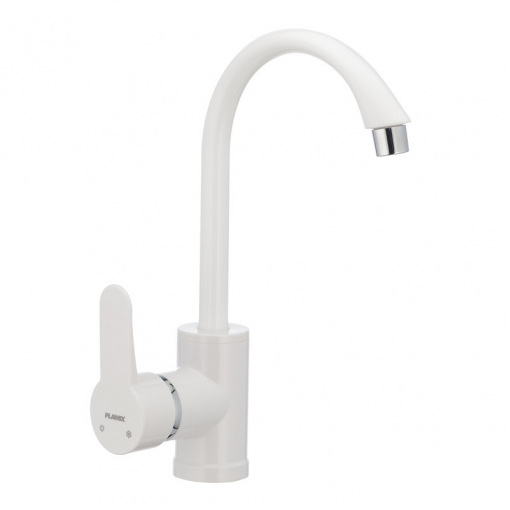 Одноручковый смеситель для кухни PLAMIX Leon-011 белый (PM0009) изготовлен из термопластика и обладает рядом преимуществ: не подвержен воздействию коррозии, обладает стойкостью к соли, щелочи и кислотам, в процессе эксплуатации не темнеет, не меняет цвет и легко чистится. При производстве используются экологически чистые материалы. Смеситель состоит из стандартных деталей, которые в случае чего можно заменить. Монтируется под одно отверстие (мойка, столешница, подоконник) на гайку.