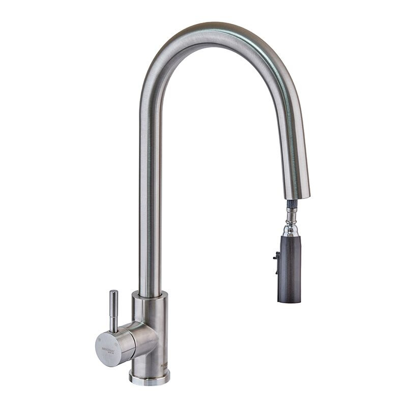 Смеситель для кухни с выдвижной лейкой (скрытой) Mixxus LUX-014 Hidden (нерж. сталь) (MI6231)