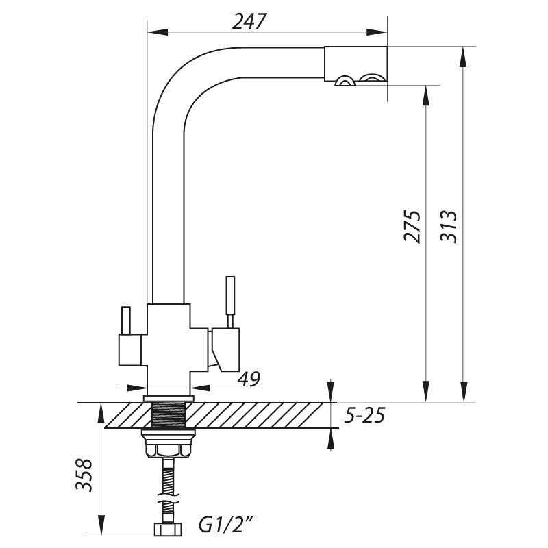 Данная модель заменяет сразу 2 крана: смеситель и кран с фильтрованной водой. Общая длина излива - 22 см. Запорный элемент - керамический картридж 35 мм. Подключается к трубопроводу двумя гибкими подводками, которые идут в комплекте вместе с крепежным элементом, 2-мя аэраторами и резиновыми прокладками. Поставляется в фирменной коробке Zerix.