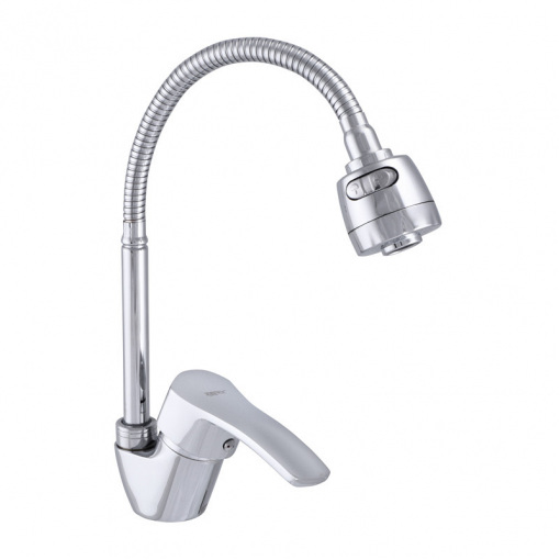 Одноручковый смеситель для кухни ZERIX YUB 279 с рефлективным изливом (ZX2950) монтируется под одно отверстие (мойка, столешница, подоконник) на гайку. Материал корпуса - стойкий к коррозии силумин (сплав алюминия с кремнием). Покрытие - зеркальный хром.На гибком рефлекторном изливе двухрежимный аэратор с переключением кнопкой на струю и душ. Запорный элемент - керамический картридж 40 мм. Подключается к трубопроводу двумя гибкими подводками, которые идут в комплекте вместе с крепежным элементом, аэратором и резиновыми прокладками. Поставляется в фирменной коробке Zerix.