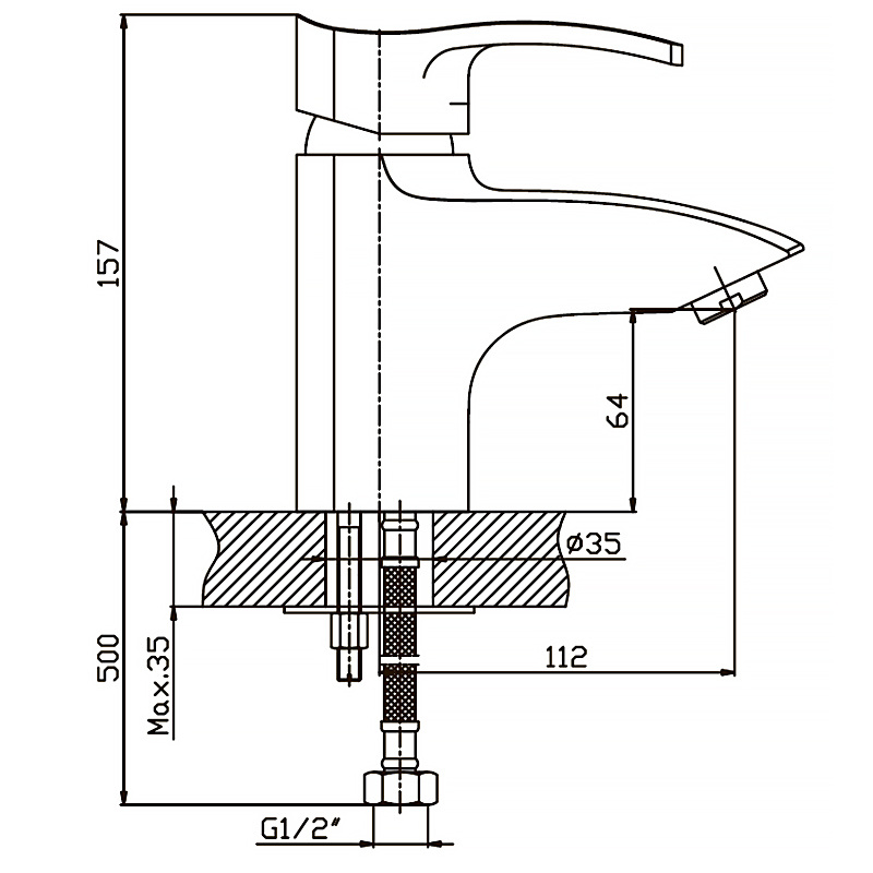 Излив литой длиной 112 мм. Запорный элемент - заменяемый керамический картридж 40 мм. производства компании Sedal. Высота смесителя - 157 мм. Подключается к трубопроводу двумя гибкими подводками, которые идут в комплекте вместе с крепежным элементом, аэратором и резиновыми прокладками. Поставляется в фирменной коробке Haiba.