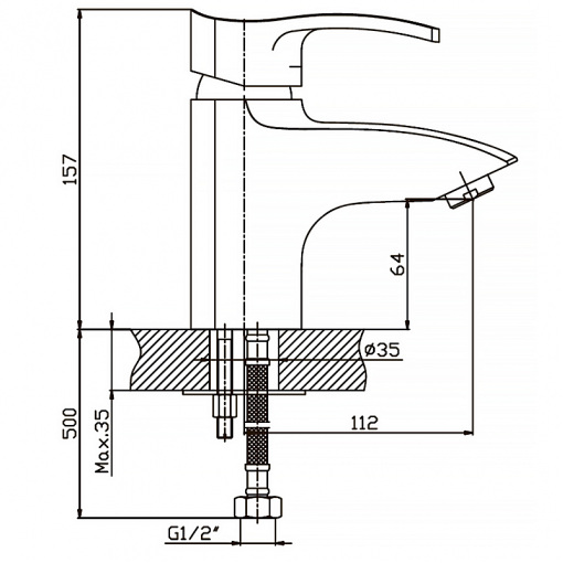 Излив литой длиной 112 мм. Запорный элемент - заменяемый керамический картридж 35 мм. производства компании Sedal. Высота смесителя - 157 мм. Подключается к трубопроводу двумя гибкими подводками, которые идут в комплекте вместе с крепежным элементом, аэратором и резиновыми прокладками. Поставляется в фирменной коробке Haiba.