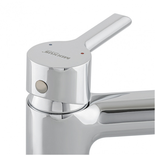 Представленный однорычажный смеситель на умывальник станет хорошим приобретением для раковин с глубокой чашей. Устройство обладает коротким изливом, который обеспечивает оптимальную высоту падения воды с минимальным ее разбрызгиванием в стороны.