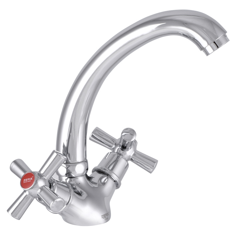 Запорный элемент - заменяемая кран букса. Подключается к трубопроводу двумя гибкими подводками, которые идут в комплекте вместе с крепежным элементом, аэратором и резиновыми прокладками. Поставляется в фирменной коробке Zerix.