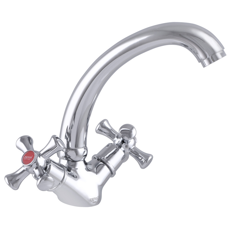 Двуручковый смеситель для умывальника ZERIX TMC 828 (ZX0085) монтируется шпилькой на одно отверстие. Материал корпуса - стойкий к коррозии силумин (сплав алюминия с кремнием). Покрытие - зеркальный хром.