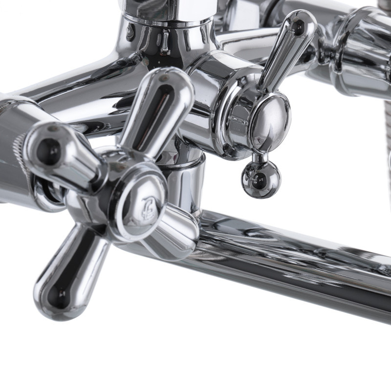Смеситель для ванной с поворотным изливом EP DOMINOX 143 имеет заменяемый запорный элемент - кран буксу с резиновыми прокладками размером 1/2 дюйма. Устанавливается на трубы холодной и горячей воды, вмонтированные в стену. Закрепляется с помощью эксцентриков, которые идут в комплекте вместе с резиновыми прокладками, декоративными чашками, шлангом, лейкой и кронштейном.