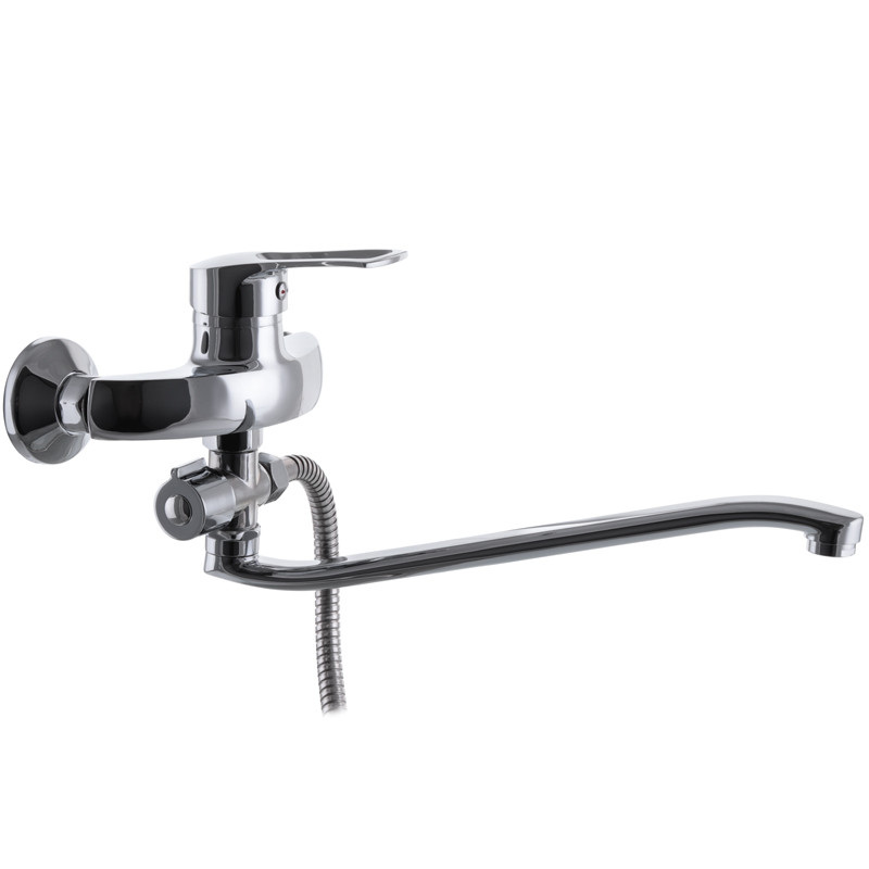 Смеситель для ванной с поворотным изливом G-FERRO HANSBERG 006 (GF1013) имеет заменяемый запорный элемент - картридж с керамическими пластинами диаметром 40 мм. Устанавливается на трубы холодной и горячей воды, вмонтированные в стену. Закрепляется с помощью эксцентриков, которые идут в комплекте вместе с резиновыми прокладками, декоративными чашками, шлангом, лейкой и кронштейном.