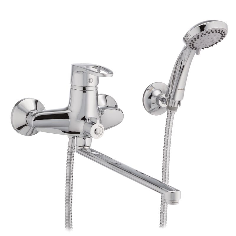 Смеситель для ванной с поворотным изливом HAIBA CEBA 006 EURO имеет заменяемый запорный элемент - картридж с керамическими пластинами диаметром 40 мм. Устанавливается на трубы холодной и горячей воды, вмонтированные в стену. Закрепляется с помощью эксцентриков, которые идут в комплекте вместе с резиновыми прокладками, декоративными чашками, шлангом, лейкой и кронштейном.