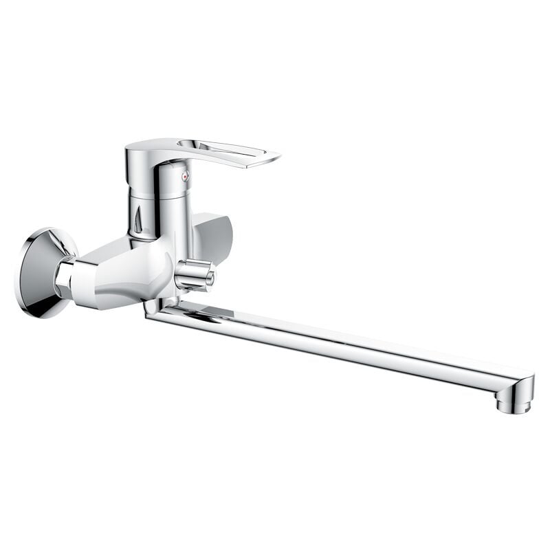 Смеситель для ванны с поворотным изливом Haiba Germes 006 Euro имеет заменяемый запорный элемент - картридж с керамическими пластинами диаметром 40 мм. Устанавливается на трубы холодной и горячей воды, вмонтированные в стену. Закрепляется с помощью эксцентриков, которые идут в комплекте вместе с резиновыми прокладками, декоративными чашками, шлангом, лейкой и кронштейном.