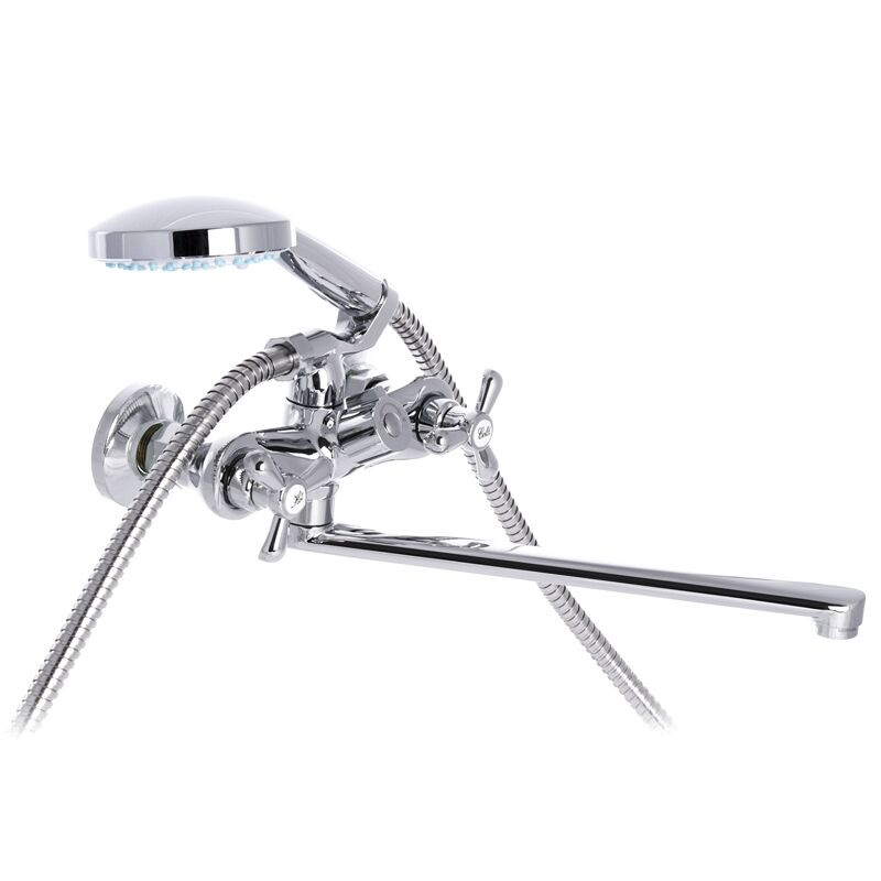 Смеситель для ванной с поворотным изливом Mixxus Vega 140 Euro имеет заменяемый запорный элемент - полуоборотную керамическую кран буксу размером 1/2. Устанавливается на трубы холодной и горячей воды, вмонтированные в стену. Закрепляется с помощью эксцентриков, которые идут в комплекте вместе с резиновыми прокладками, декоративными чашками, шлангом и лейкой.