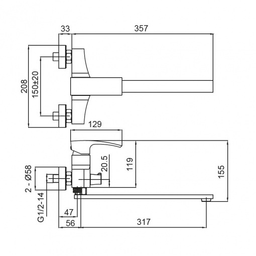 Подробные характеристики Смеситель для ванны с длинным изливом Koer KB-42007-01 (Цвет хром) (KR3456).