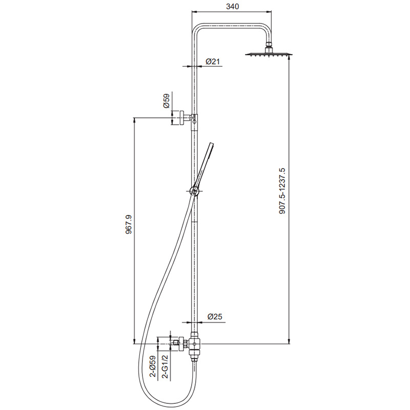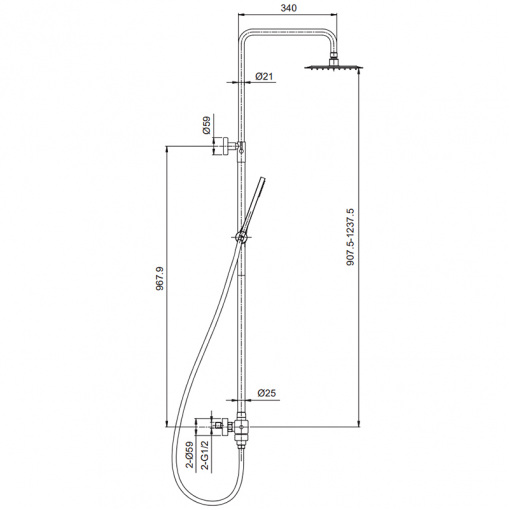 Термостатическая душевая колонна со смесителем Koer KI-57017-02 (из нерж. стали) (KR4788)