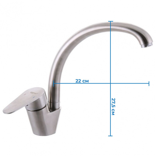 Смеситель на кухню Zerix ASA-011-1 (ZX3133) монтируется под одно отверстие: мойка, столешница, подоконник. Материал корпуса - нержавеющая сталь SUS 304 отличается низким содержанием в составе углерода и отсутствием свинца. Она устойчива к коррозии и воздействию химических веществ.