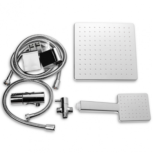 Душова колона (без змішувача) ZERIX DK-003 (ZX3095) встановлюється на труби холодної і гарячої води, вмонтовані в стіну. Комплектація включає шланг, ручну лійку, душову стійку, кронштейн і кріплення.