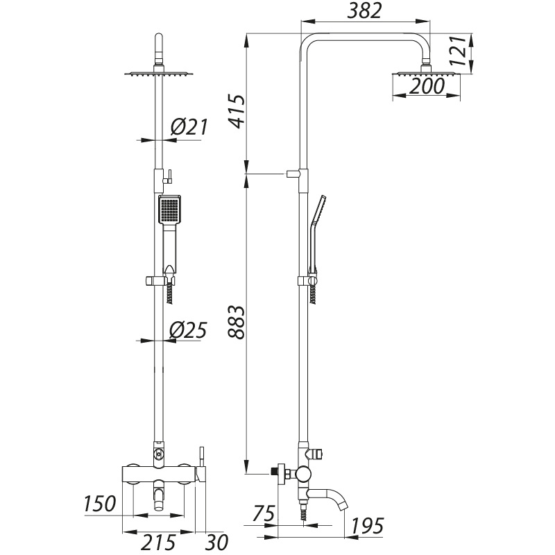 Душова колона із змішувачем ZERIX LR72404 (нерж. сталь) (LL1472)