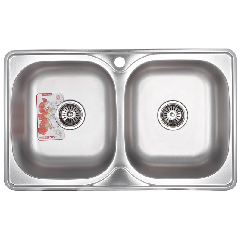 Прямокутна врізна мийка для кухні Zerix виготовлена із міцної нержавіючої сталі та має декоровану поверхню (micro decor). Завдяки двом чашам мити велику кількість продуктів або габаритний посуд набагато зручніше. Колір - сталевий. Розміри – 78х48 см, глибина – 18 см.