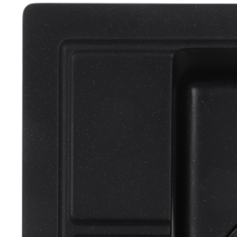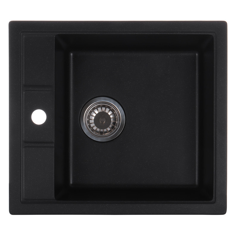 Кухонна мийка Zerix ZS-4651S-14 Black metallic виготовлена з граніту та має матову (satin) поверхню. Ширина мийки – 51,5 см, довжина – 46 см, глибина – 20 см. Тип мийки – врізна. Для її встановлення в стільниці вирізається отвір відповідного розміру. Отвір під установку змішувача вже зроблено.