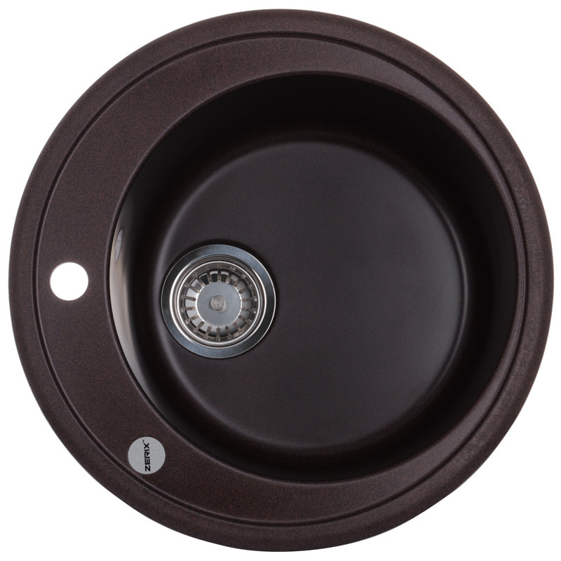 Кухонна мийка Zerix ZS-510R-12 Brown виготовлена з граніту та має матову (satin) поверхню. Ширина мийки – 51 см, довжина – 51 см, глибина – 20 см. Тип мийки – врізна. Для її встановлення в стільниці вирізається отвір відповідного розміру. Отвір під установку змішувача вже зроблено.