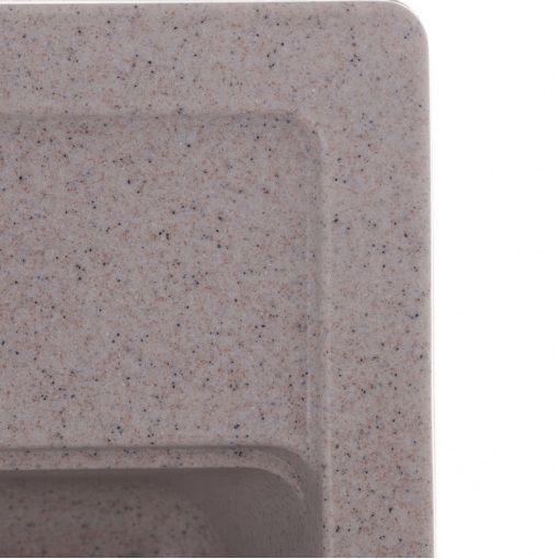Кухонна мийка Zerix ZS-5751S-07 Marble виготовлена з граніту та має матову (satin) поверхню. Ширина мийки – 51 см, довжина – 57 см, глибина – 19 см. Тип мийки – врізна. Для її встановлення в стільниці вирізається отвір відповідного розміру. Отвір під установку змішувача вже зроблено.