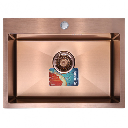 Прямокутна врізна мийка для кухні Mixxus виготовлена із міцної нержавіючої сталі та має PVD поверхню. Колір – бронзовий. Розміри - 58х43 см, глибина - 20 см. Для установки врізної мийку в стільниці необхідно вирізати отвір трохи менше розмірів мийки і притиснути її кріпленнями. У комплектації сифон, кріплення, стрічка ущільнювача і сітка. Гарантія 2 роки.