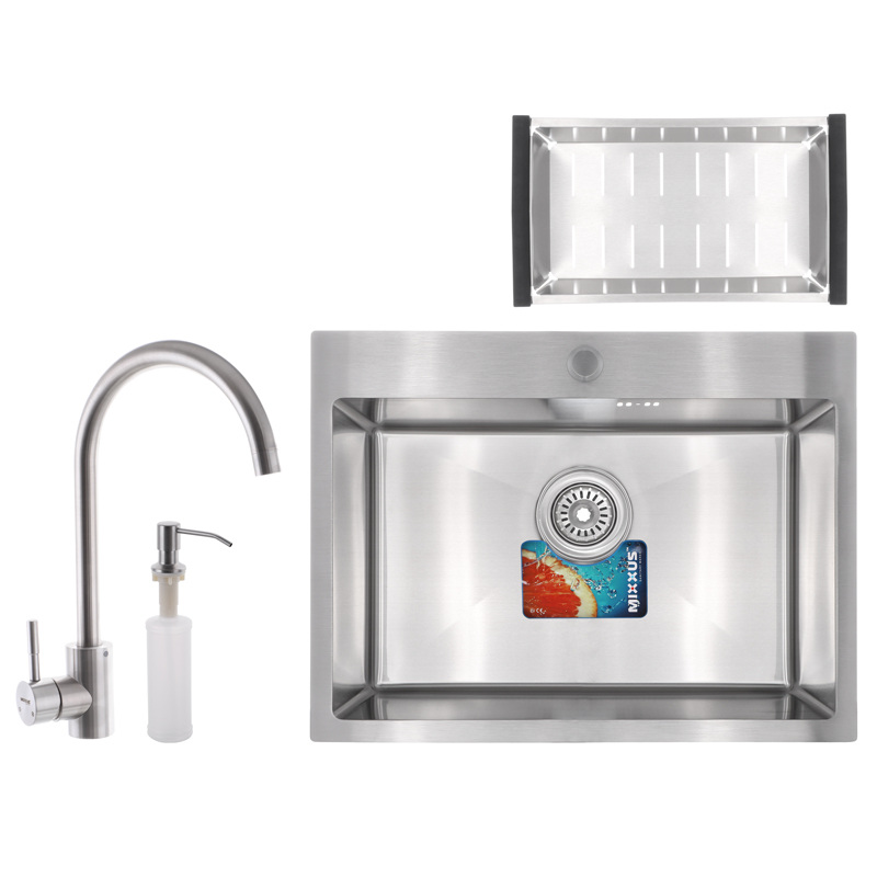 Набір MIXXUS SET-6045-200x1.0-SATIN (мийка + змішувач + диспенсер + сушка для посуду) (MX0584)