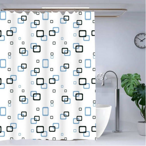 Штора для ванної з поліетилену Zerix SCP-002-180x180 (Візерунок синьо-блакитний на білому) (ZX5001)
