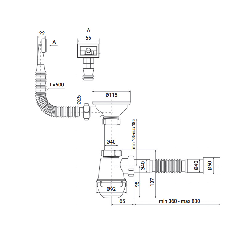 Сифон для кухні ZERIX SK-02-A 3 1/2"x40 з різьб. випуском та гнучким прямокутним переливом (ZX4952)