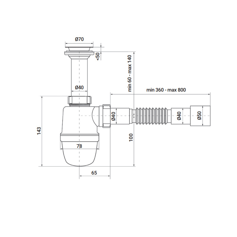 Детальні характеристики Сифон для умивальника ZERIX SU-02-A 1 1/2"x40 з литим випуском (ZX4948).